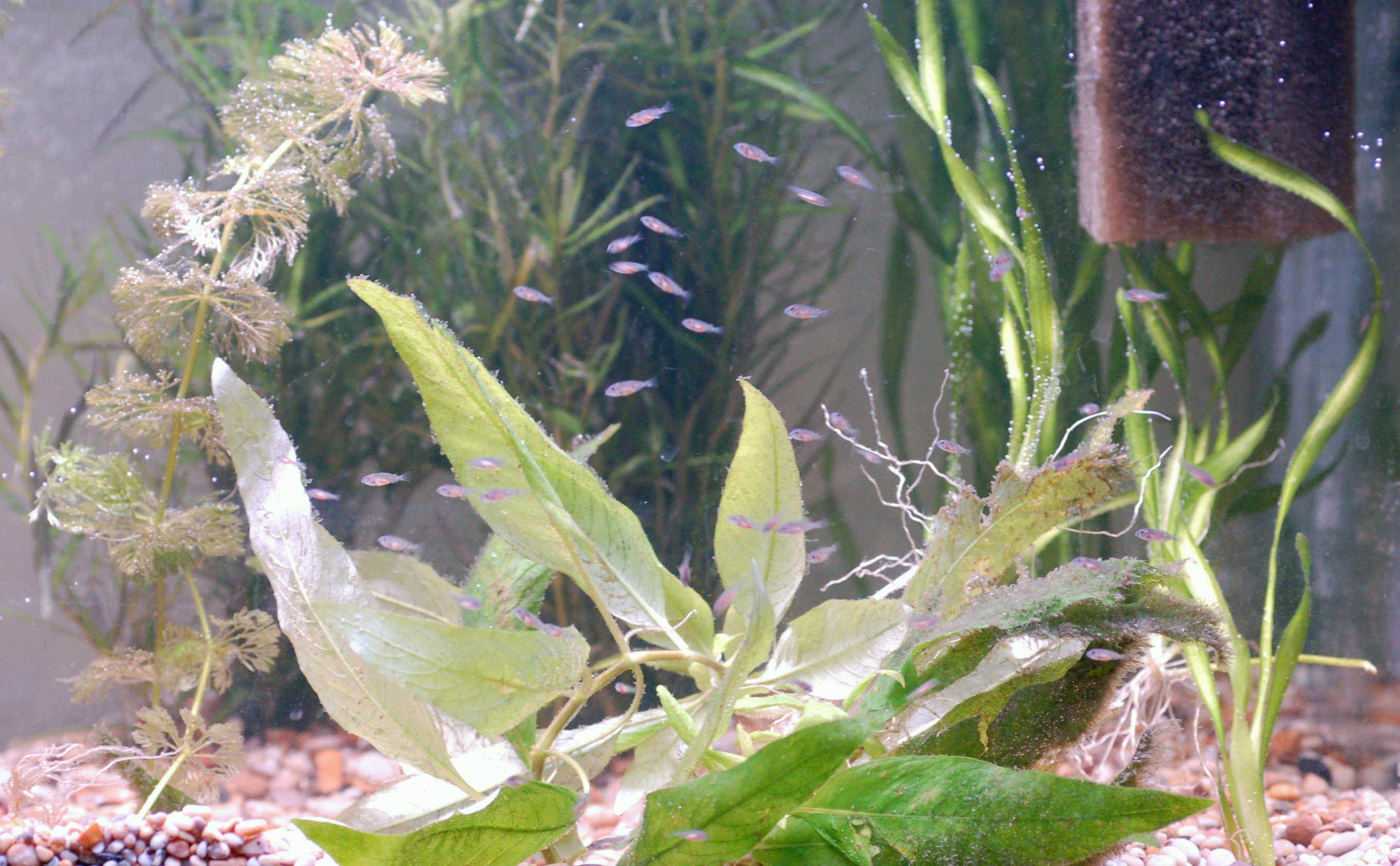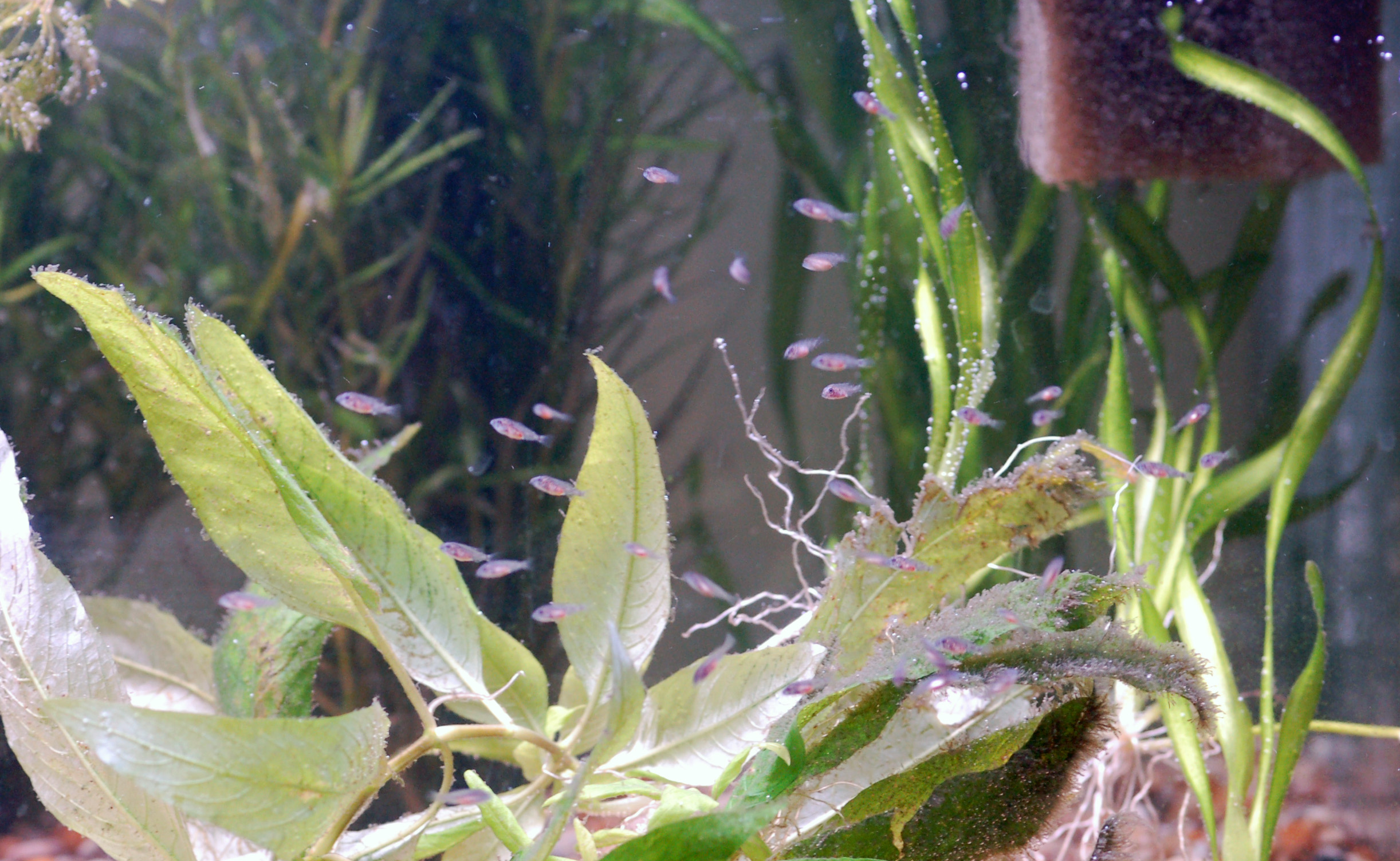 mallikelpoisen hyvin, mutta yöaikana akvaarion muut kalat pääsevät parvea verottamaan. Viime yönä hävisi 5 poikasta