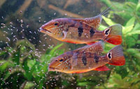 Isossa akvaariossa on vanhempien hoidossa nyt vajaa 20 poikasta. Poikaset ovat hyvin syöneen näköisiä ja emot